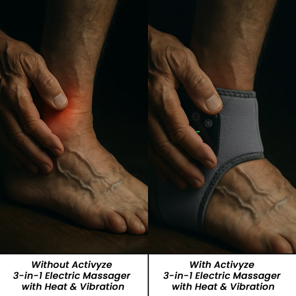 The Activyze 3-in-1 Electric Massager with Heat & Vibration outperforms traditional foot and leg massagers with its triple-action therapy (heat, compression, and vibration), portable cordless design, and lasting relief. It makes daily recovery easier, faster, and more effective, so you can feel the difference in just 15 minutes.